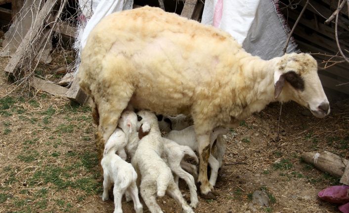Muğla’nın Fethiye ilçesinde Halil İbrahim ve Saliha Demirci çiftine ait koyun, bir batında 7 kuzu doğurdu.