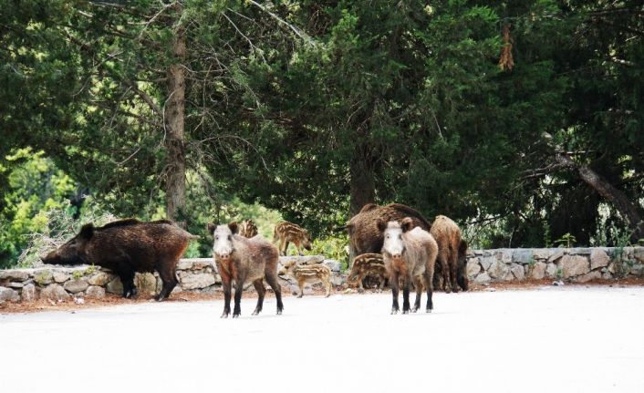 Öte yandan, Bodrum’un birçok mahallesinde gece vakti gelen domuzlar mahalleleri sessiz görünce gündüz vakti de şehre inmeye başladı.