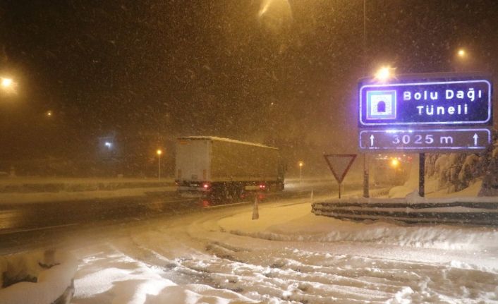 Bolu’da, D-100 karayolu ve TEM Otoyolu Bolu Dağı kesiminde akşam saatlerinde başlayan yoğun kar yağışı etkili olurken, sürücüler güzergahta güçlükle ilerliyor.