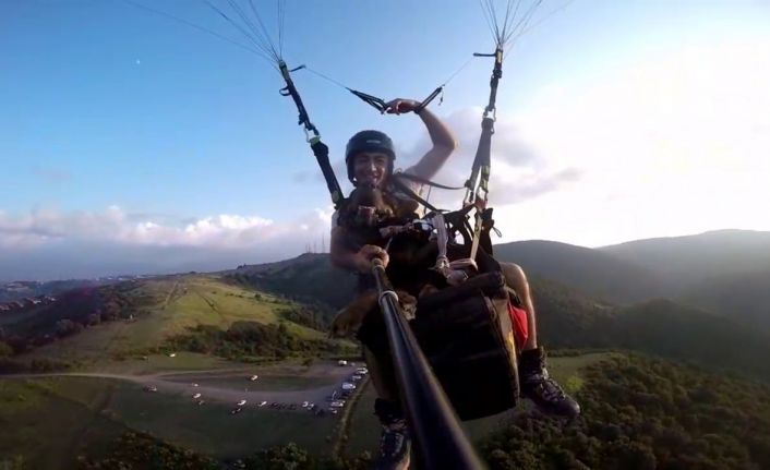 Paraşütçülerin vazgeçilmez merkezi haline gelen Serdivan ilçesindeki Kırantepe’de Cevat Kılınç isimli yamaç paraşütçüsü, köpeği ile birlikte Sakarya semalarında uçarak o anları aksiyon kamerasına kaydetti. Köpeği ile birlikte uçuş takımlarını giyen Kılınç havalanırken, köpeğin sakinliği dikkat çekti. Yaklaşık yarım saat köpeği ile havada süzülen paraşütçü, o anları kayda almayı da unutmadı. Köpeği ile unutulmaz bir deneyim yaşayan Kılınç, sorunsuz şekilde iniş yaparak uçuşu tamamladı.