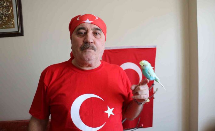 Sivas’ta Japon isimli muhabbet kuşu, "Muhsinler ölmez vatan bölünmez" ve "Muhsin başkan ruhun şad olsun" diyor.