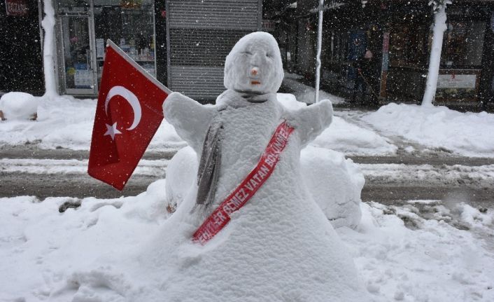 Geçtiğimiz akşam yoğun kar yağışının etkisini göstermeye başlaması ve saatlerce devam etmesi sonucunda Balıkesirliler güne bembeyaz bir görüntüyle başladı. Balıkesir’in Karesi İlçesi Milli Kuvvetler Caddesi’nde bulunan esnaflar dükkanlarının önlerine kardan adam yaparak ilginç görüntüler oluşturdular. Cadde üzerinde esnafların yaptığı kardan adamları gören vatandaşlar fotoğraf çekinmek istediler. Yoğun kar yağışı sonrasında dükkanının önüne boyu 2 metreden uzun kardan adam yapan Aybüke Baş, 3 kişi ile birlikte yaklaşık 1 saatte bitirdiklerini ifade etti. Esnaf Aybüke Baş, Balıkesir’e çok fazla kar yağmadığını ve bu yağan karı da değerlendirmek için böyle bir işe giriştiklerini ifade ederken sözlerinin devamında vatandaşların yaptıkları kardan adama yoğun ilgi gösterdiklerini ve fotoğraf çekindiklerini söyledi.Burası kardan adamların caddesi