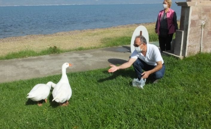 İskele Mahallesi Kordonboyu Caddesi İğdealtı mevkiinde,3 hafta önce denizden gelen iki kaz yörede oturan vatandaşların maskotu oldu. Vatandaşlar, kazları beslemek için sıraya girerken, sahilde spor yapan vatandaşlar da kazlara ilgi gösteriyor. Kazların misafirleri olduğunu anlatan Metin Yıldız, “Ben bu mahallenin sakiniyim. Bu gördüğünüz kazlar yaklaşık 2 haftadır burada bizim misafirimiz. Bir sabah baktık ki denizden iki tane kaz gelmiş. Köpeklerlerle de dost oldular. Konu komşu yemek artıkları ile buğday ve mısır veriyor. Çocukların da çok hoşuna gidiyor. Gelip geçenler, bilhassa yürüyüş yolu olduğu için kazları seviyorlar. Kendilerini misafirimiz olarak görüyoruz . Burada kalmalarını istiyoruz. Yalnız sahibini bilmiyoruz. Bu kazlar sahibi iyi bakmadığı için mi geldiler, yoksa uçup da mı geldiler bilmiyoruz. Bir sabah denizden çıkıp geldiler. Bilhassa çocuklar çok mutlu. Onlarla hoşca vakit geçiriyorlar” dedi.