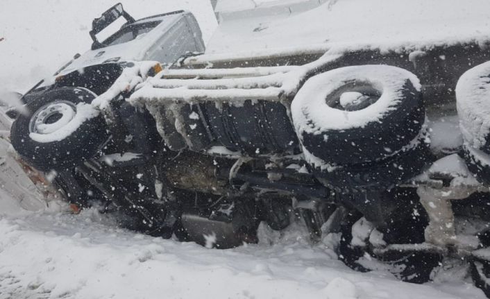 Susurluk istikametinde bir kamyonun ise yan yattığı görüldü.