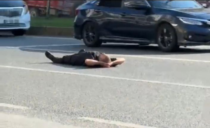 Bursa’nın Orhangazi ilçesinde sabah saatlerinde yaşanan ilginç olayda bir şahıs trafiğin yoğun olduğu ana yolun ortasına yattı. Sürücüler korna çalarak vatandaşı uyarsa da o rahatını hiç bozmadı.