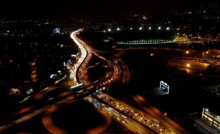 Bursa’da günde 210 bin aracın geçtiği şehrin kalbi durumundaki Acemler Kavşağı’nda kısıtlama öncesi trafik yoğunluğu yaşandı. Acemler ve İzmir yolundaki trafik havadan görüntülenirken, trafik polisleri vatandaşların evlerine kısıtlama öncesi ulaşabilmesi için hummalı bir çalışma gerçekleştirdi.