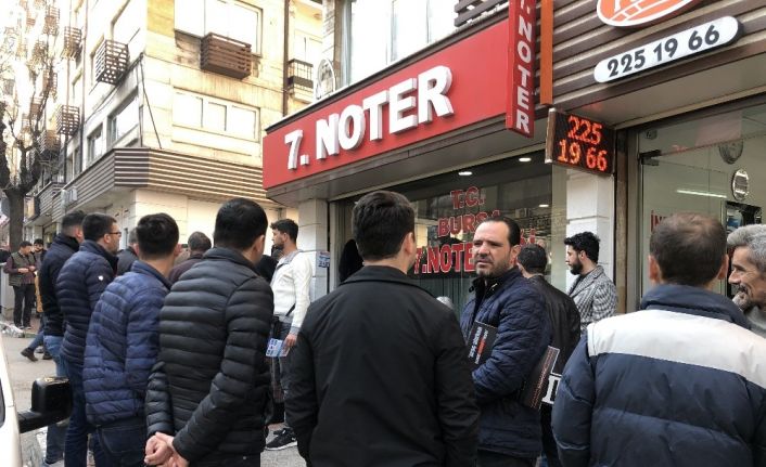 Bursa’da vatandaşlar hafta sonu işlem yaptırmak için nöbetçi noterlere akın etti. Sabahın erken saatlerinden itibaren yüzlerce insanın sıraya girdiği nöbetçi noterlerde uzun kuyruklar oluştu. Hafta içi mesai yaptıkları için notere gidemeyen vatandaşlar, özellikle ikinci el araç alım satımı yapmak için nöbetçi noterlere akın etti. Nöbetçi noter uygulamasının çok yerinde bir karar olduğunu söyleyen vatandaşlar, noter sayısının artırılmasını istedi.