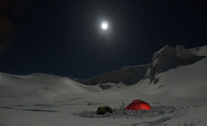 Türkiye’nin en önemli kış ve doğa turizm merkezlerinden biri olan Uludağ’a tırmanan Bursalı dağcılar, 1,5 metreyi bulan kar üzerinde gece sıfırın altında 13 derecede dolunayda kamp yapmanın keyfini çıkardı.