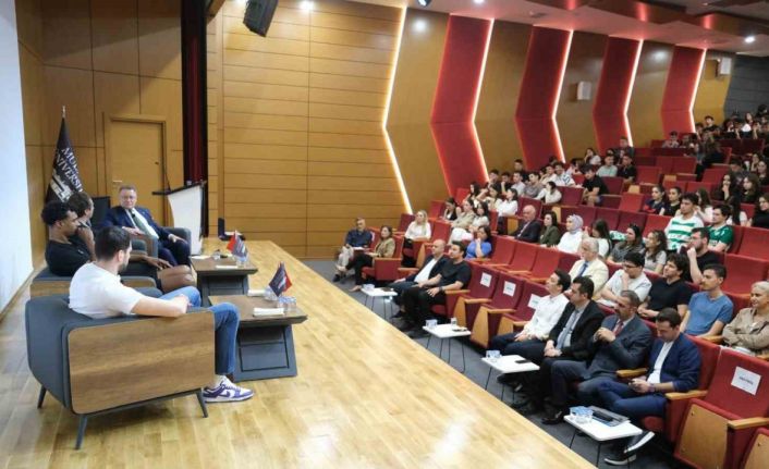 Bursaspor Basketbol Takımı Başkanı Sezer Sezgin ile basketbolcular Berkay Candan ve Donte Gratham, Mudanya Üniversitesi öğrencileri ile söyleşide bir araya geldi.