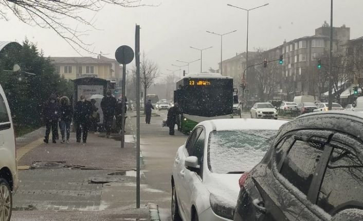 Bursa’da kısa sürede etkili olan kar yağışı şehir merkezini beyaza bürüdü.