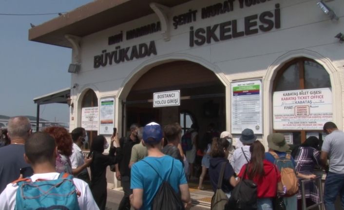 Sıcak yaz günleri devam ederken hafta sonunun yaklaşmasıyla vatandaşlar Adalar’a akın etti. Ada vapuru yerli ve yabancı turistlerle doldu. Büyükada İskelesi’nde oluşan yoğunluk havadan da görüntülendi.