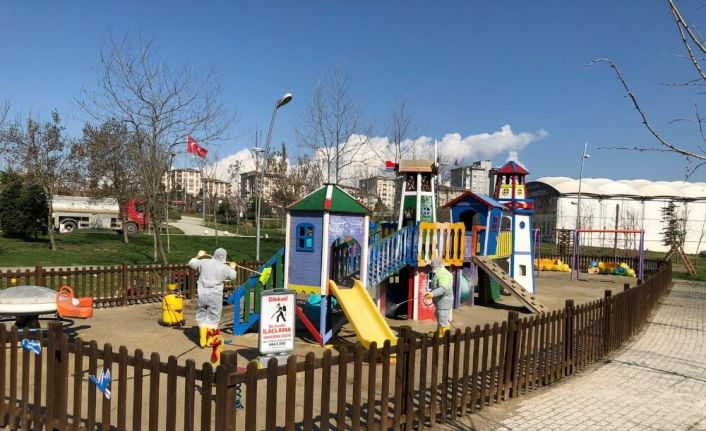 Dünyayı etkisi altına alan korona virüsü nedeniyle Büyükçekmece’deki tüm çocuk oyun alanları ilaçlanarak dezenfekte ediliyor.