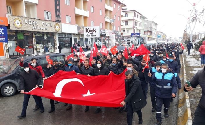 Van’ın Çaldıran ilçesinde bir araya gelen yüzlerce kişi, Irak’ın Gara bölgesinde terör örgütü PKK tarafından silahsız 13 güvenlik görevlisinin şehit edilmesini protesto etti.