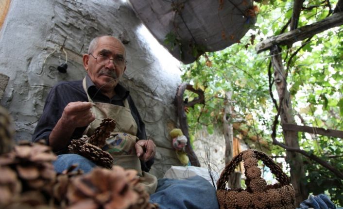 Antalya’nın Akseki ilçesinde yaşayan 83 yaşındaki Hasan Erdoğan, ormandan topladığı çam kozalaklarını adeta sanat eserine çeviriyor. 55 yıl yaptığı tahta kaşık sanatını astım hastalığı sebebiyle bırakıp oksijen deposu ormanlarıyla ünlü Akseki ilçesine gelen Erdoğan, burada 20 yıldır kozalaklardan sepet, avize ve tabak yapıyor. Erdoğan yaptığı el sanatı ürünleri 50 TL ile 200 TL arasında satıyor.