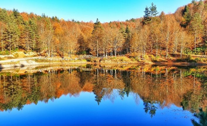 DÜZCE(İHA) – Düzce’nin Kaynaşlı ilçesinde yer alan Çamlıpınar Göleti’nin manzarası havadan görüntülendi. Göletin yansıyan görüntüsü, güzel bir tablo oluşturdu.