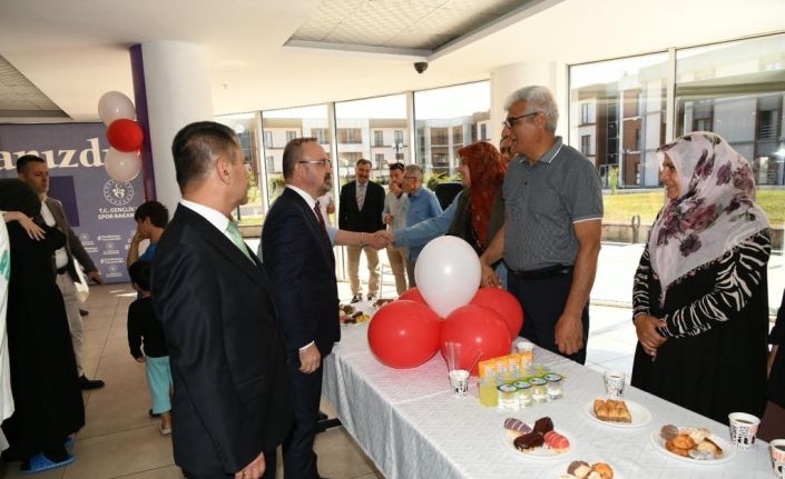 Çanakkale’de Kurban Bayramı dolayısıyla Hüseyin Akif Terzioğlu Yurdu’nda kalan depremzede vatandaşlarla bayramlaşma töreni düzenlendi.