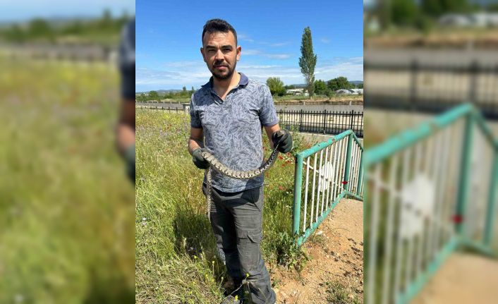 Çanakkale’nin Bayramiç ilçesinde, İl Genel Meclisi Üyesi Sadık Göğüsgeren’in traktörünün arkasında sanayiye getirdiği borular arasından engerek yılanı çıktı. Zehirli yılanı fark ederek yakalayan sanayi esnafı, hayvanı tekrar doğaya bıraktı.