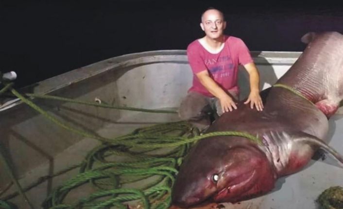 Ayvacık’ın Babakale köyü açıklarına sabah saatlerinde avlanmaya çıkan balıkçı tekneleri ağlarını denize bıraktı. Ağlarını toplayan balıkçıların ağına bölgede az rastlanan camgöz cinsi 5 metre uzunluğunda 1 ton ağırlığında camgöz cinsi köpekbalığı takıldı. Balıkçılar ağlarına takılan köpekbalığını görünce şaşkına uğradı.