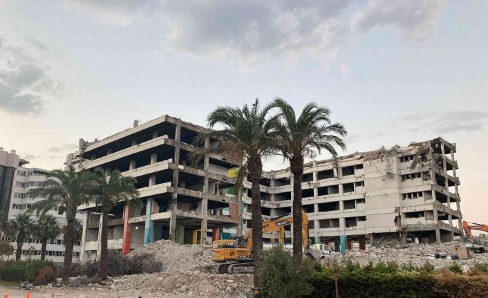 İzmir’de 30 Ekim 2020’de meydana gelen 6.6’lık depremde zarar gören İzmir Büyükşehir Belediyesi ana hizmet binasının yıkımı devam ediyor. Çalışmalarda yıkımın yaklaşık yüzde 40’ı tamamlanırken, 38 yıl hizmet veren binanın yıkımında çalışmalar, gürültü ve çevre kirliliği yaşanmaması amacıyla saat 21.00’da başlayıp, 05.00’te bitiyor.
