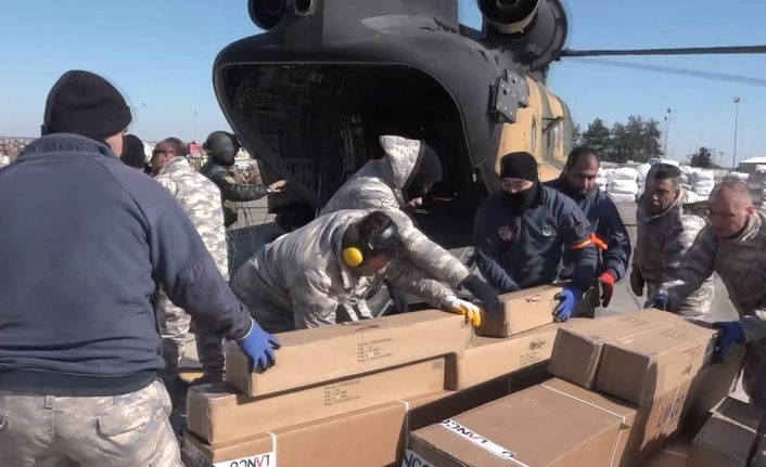 Milli Savunma Bakanlığı (MSB) tarafından yapılan açıklamada, Adana İncirlik Üssündeki Lojistik Merkezinde hazırlanan yardım malzemelerinin nakliye helikopterleri ile vatandaşlara ulaştırıldığı belirtildi.