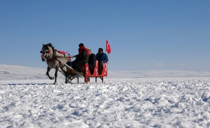 Türkiye Kent Konseyleri Birliği Yönetim Kurulu üyeleri, güneşli havada Çıldır Gölü üzerinde atlı kızak keyfi yaşadı.