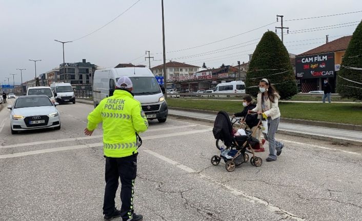 Düzce’de trafik polisinden duyarlı bir davranış gerçekleşti. Trafik Tescil ve Denetleme Şube Müdürlüğü’nde görevli polisler tarafından D-100 karayolunda trafik denetlemesi için çalışma yaptıkları esnada bir annenin çocukları ile birlikte karşıdan karşıya geçmek istediğini gördü. Yoğunluk nedeni ile araçların yaya geçidinden geçmek isteyen anne ve çocuklarına yol vermediğini fark eden trafik polisi, trafiği durdurarak anne ve çocuklarının karşıdan karşıya geçmesini sağladı. Duyarlı bir davranış sergileyen polis memurunun bu hareketine anne ve çocuğu teşekkür ederken, trafik polisi de araç sürücülerine teşekkür etti.Çocuklarıyla karşıya geçemeyen annenin yardımına polis koştu