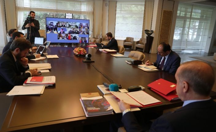 Dünyanın siyasi ve ekonomik olarak yeniden şekillendiği bir döneme girildiğini vurgulayan Erdoğan, "Bu kritik dönüm noktasında karşımıza çıkan fırsatları değerlendirmek için öncelikle önümüzdeki salgın engelini aşmalıyız. Bunu başardığımızda aydınlık bir geleceğin bizi beklediğinden şüphemiz yoktur. Yeni sürecin öncülüğünü yapmak da 18 yıldır olduğu gibi AK Partiye, yani buradaki heyete düşüyor" ifadelerini kullandı.