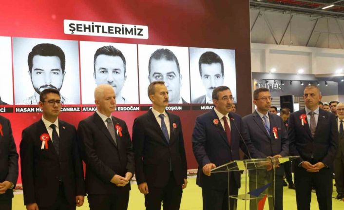 Ardından basın mensuplarına konuşan Cumhurbaşkanı Yardımcısı Cevdet Yılmaz, “Dün menfur, hain bir terör saldırısı yaşandı. Bir kez daha bu terör eylemini yapanları ve bunun arkasındaki karanlık odakları lanetliyoruz. 5 şehidimiz oldu. Şehitlerimize Allah’tan rahmet diliyorum. Yakınları başta olmak üzere mesai arkadaşlarına, tüm milletimize başsağlığı diliyorum. Bugün öğle saatlerinde taksi esnafı şehit kardeşimizin cenaze merasimine katıldık. Oradan TUSAŞ’ın Ankara’daki tesislerine geçtik. Meclis başkanımız, bakanlarımız ve çok sayıda milletvekilimiz ile birlikte geçmiş olsun dileklerimizi ilettik. Az önce değerli başkanımızın dediği gibi; TUSAŞ’ta çalışanları, savunma sanayimizin kahraman çalışanlarını çok daha motive gördük. Yine az önce belirtildiği üzere dünkü saldırıda yaralandığı halde tedavisini hızla tamamlayıp işinin başına dönen arkadaşlarımızın bizde gördük. Hepsine bende şükranlarımı sunuyorum. Güçlenen, tam bağımsızlığı hedefleyen Türkiye’mizin her geçen yıl gelişen daha üst seviyelere ulaşan savunma sanayini hedef alan bu hain saldırı murat ettiğinin tam tersi etkiler oluşturacak diye inanıyorum. Eskisinden de daha azimli bir şekilde, daha güçlü bir şekilde savunma sanayimizi geliştirmeye devam edeceğiz. Fedakar, kahraman savunma sanayi çalışanlarımız, gurur duyduğumuz savunma sanayi firmalarımızla, ülkemizi tam bağımsızlık yolunda her geçen yıl daha ileri noktalara taşıyacağız. Bugün Türkiye dünyada bu alanda söz sahibi ülkelerden biridir. Bunu engellemeye dönük hiçbir çabanın da sonuç vermeyeceğini, başarılı olmayacağını buradan ifade etmek isterim. İstanbul’da da hem bu fuarımızı görmek hem de TUSAŞ’ın buradaki personeline geçiş olsun dileklerimizi iletmek için aranızdayız. Buradaki çalışmalarında hiç kesintiye uğramadan devam etmesinden yine gurur duyduk. Bu menfur saldırıya rağmen fuar gayet canlı bir şekilde devam ediyor. Milyarlarca dolarlık sanayi savunma sözleşmeleri yapılmış durumda. Bu da terör eyleminin başarılı olmak bir yana bizi bu konuda daha da kamçıladığını gösteren güzel bir örnek. Ben savunma sanayimizin her bir ferdine, katkısı olan tüm çalışanlara, tüm firmalara şükranlarımı sunuyorum" dedi.