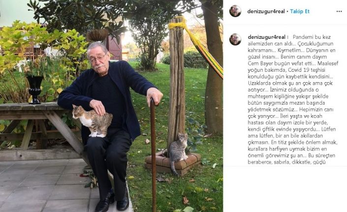 Vefat eden dayısı Cem Bayer’in fotoğrafını sosyal medyadan paylaşan Deniz Uğur, "Pandemi bu kez ailemizden can aldı, çocukluğumun kahramanı, kıymetlim. Dünyanın en güzel insanı, benim canım dayım Cem Bayer bugün vefat etti. Maalesef yoğun bakımda, Covid-19 teşhisi konulduğu gün kaybettik kendisini. Uzaklarda olmak şu an çok ama çok acıtıyor. İznimiz olduğunda o muhteşem kişiliğine yakışır şekilde bütün saygımızla mezarı başında yad etmek sözümüz. Hepimizin canı çok yanıyor. İleri yaşta ve koah hastası olan dayım izole bir yerde, kendi çiftlik evinde yaşıyordu. Lütfen ama lütfen, bir an bile akıllardan çıkmasın. En titiz şekilde önlem almak, kurallara harfiyen uymak bizim en önemli görevimiz şu an. Bu süreçten beraberce, sabırla, dikkatle, güçlü çıkmamızı Allah’tan diliyorum” diye yazdı.