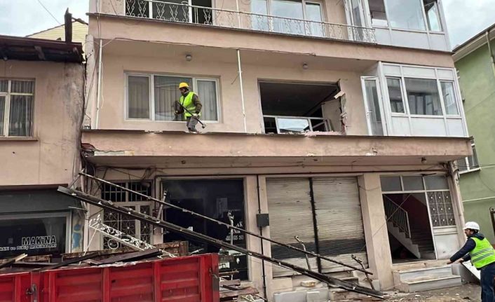 Düzce’de meydana gelen 5.9 büyüklüğündeki depremin ardından ağır hasar alan ilk evin yıkımına başlandı.