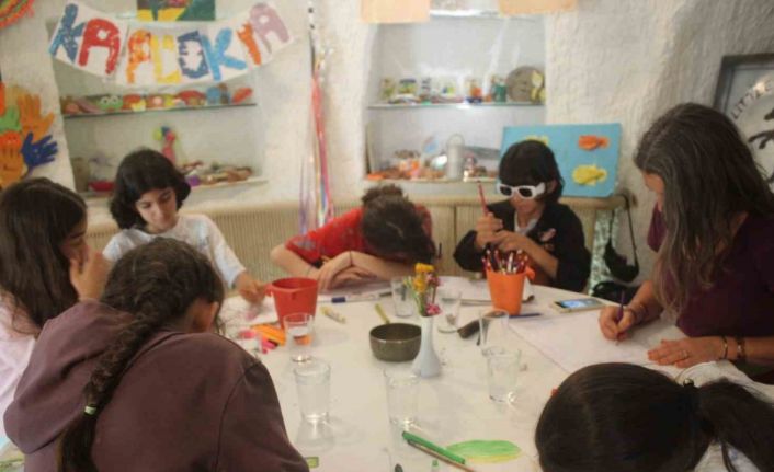 Kaya oyma mekanlarda yapılan etkinliklerde hayallerini resmeden ve anlatan çocukların ortak düşünceleri depreme dayanıklı yapılarda yaşamak.