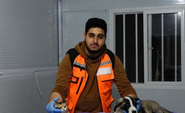 Kahramanmaraş merkezli depremlerin ardından bir veterinerlik öğrencisi, Hatay’da enkazdan çıkarılan hasta kedi ve köpekleri gönüllü olarak tedavi ederek yaşamlarına dokunuyor.