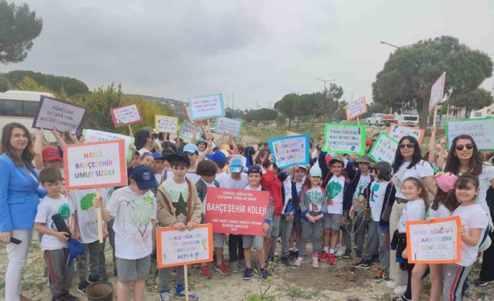 Türkiye’nin 65 ilinde 153 kampüsü bulunan BahçeşehirKoleji, Çeşme Belediyesi Çeşmeköy Tarımsal Kalkınma Kooperatifinin başlattığı “Sakız ağacım anavatanına geri dönüyor” projesine destekte bulundu. Proje çerçevesinde Bahçeşehir Kolejinin İzmir’deki kampüsleri, dünyada sadece Yunanistan’ın Sakız Adasında ve Çeşme Yarımadasında yetişen, uzun ömürlü, kozmetik ve gıda sektöründe kullanımıyla yüksek katma değerli sakız ağaçlarından 100 tanesini toprakla buluşturmak için bir etkinlik düzenledi. Ilıca Dörtyol Kavşağına yakın, önceden belirlenen alana gelen Bahçeşehir Koleji öğrencileri, bağışladıkları 100 adet sakız ağacı fidanını öğretmenleri eşliğinde dikti. Etkinlikte, “Sakız ağacı için el ele”, “Ağaçlar dünyanın akciğeridir”, “Sakız ağaçları yeşil altındır”, “Sakız ağacı dik, karbon ayak izini azalt” yazılı pankartları açıp farkındalık oluşturan öğrenciler, sakız ağacı fidanlarının yanına, ülkemizi yasa boğan Kahramanmaraş merkezli depremde yaşamını yitiren Bahçeşehir Koleji öğrencisi, öğretmeni ve velisinden oluşan 98 kişinin adlarının yazdığı levhaları da dikti.