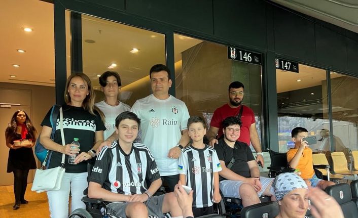 Başakşehir Çam ve Sakura Şehir Hastanesi’nde tedavi gören depremzede çocuklar Beşiktaş-Sivasspor maçını izlemeye gitti.