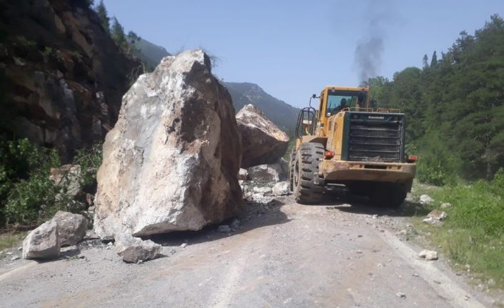 Adana’da, Feke-Saimbeyli yolu Arıkaya mevkisinde yola düşerek trafiği kapatan kayalar kaldırıldı.