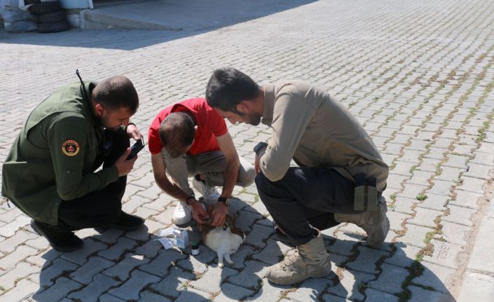 Ağrı’nın Diyadin ilçesinde yaralandığı için yürüyemeyen tavşan, tedavi edildi.
