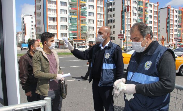 Diyarbakır’da Korona virüs tedbirleri kapsamında pazar alışverişine gelen vatandaşlara ateş ölçümü, dezenfektan, eldiven ve maske dağıtılarak alışveriş yaptı.