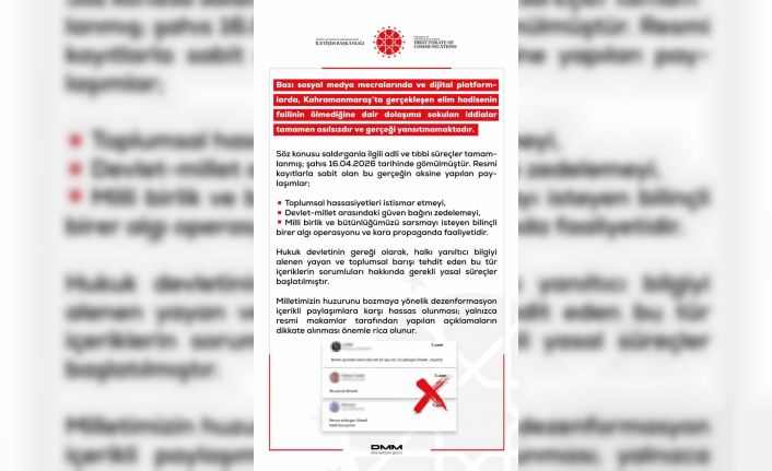 "Bazı sosyal medya mecralarında ve dijital platformlarda, Kahramanmaraş’ta gerçekleşen elim hadisenin failinin ölmediğine dair dolaşıma sokulan iddialar tamamen asılsızdır ve gerçeği yansıtmamaktadır. Söz konusu saldırganla ilgili adli ve tıbbi süreçler tamamlanmış; şahıs 16.04.2026 tarihinde gömülmüştür. Resmi kayıtlarla sabit olan bu gerçeğin aksine yapılan paylaşımlar; toplumsal hassasiyetleri istismar etmeyi, devlet-millet arasındaki güven bağını zedelemeyi, milli birlik ve bütünlüğümüzü sarsmayı isteyen bilinçli birer algı operasyonu ve kara propaganda faaliyetidir. Hukuk devletinin gereği olarak, halkı yanıltıcı bilgiyi alenen yayan ve toplumsal barışı tehdit eden bu tür içeriklerin sorumluları hakkında gerekli yasal süreçler başlatılmıştır. Milletimizin huzurunu bozmaya yönelik dezenformasyon içerikli paylaşımlara karşı hassas olunması; yalnızca resmi makamlar tarafından yapılan açıklamaların dikkate alınması önemle rica olunur."