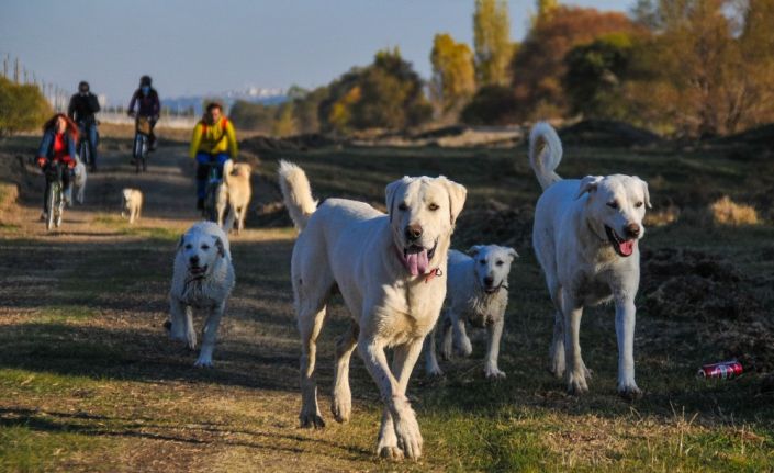 Eskişehir’de Akbaş cinsi köpekleriyle birlikte bisiklete binip doğa yürüyüşü yapan Serkan Berber, arkadaşlarıyla ‘Akbaş Safari’ adını verdikleri etkinlikte buluşuyor.