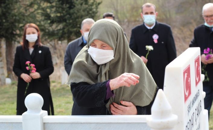 Bilecik’in Pazaryeri ilçesinde 32 yıl önce doğum gününde şehit olan Sedat Çakır mezarı başında anıldı. Anne Refiye Çakır, şehit oğlunun mezarı başında gözyaşı döktü.
