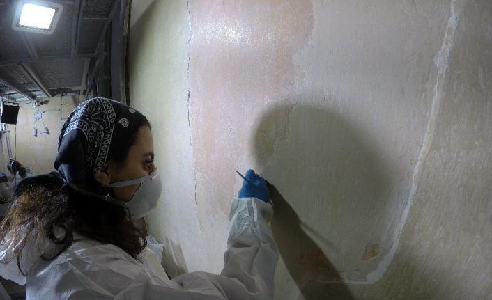 Milli Saraylar Restorasyon Daire Başkanı Cem Eriş, “Dolmabahçe Sarayı Süfera salonunda 1 yılı aşkın restorasyon çalışmalarımız devam etmekte. Salonun içerisinde elçilerin kabul edildiği odada restorasyon çalışmalarına başlamadan önce analizler yaptık. Şu an içinde bulunduğumuz 32 numaralı odada aynı çalışmalar bu şekilde devam ettiriliyor. Restorasyon ve konservasyon süreci boyunca enteresan şeylerle karşılaştık. Burada gördüğünüz duvar raspaları çalışmalarında boya katmanlarının altından bir erkek figürü resmi çıktı. O dönemin tezyinat çalışmasını yapan sanatkarlar duvarı bir resim paleti gibi kullanmışlar. Başka farklı çizimler, ağaç resimleri ve karalamalar da var. Bir kalemkarımız da insan sureti çizerek bir deneme yapmış böyle bir sürprizi boya katmanının altında bize bırakmış oraya gelince arkadaşlarımız durdular” dedi.