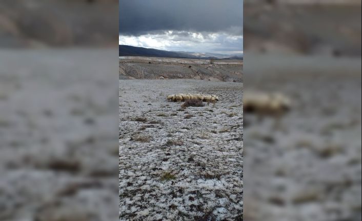 Sivas’ın Gürün ilçesinde aniden bastıran dolu yağışı etrafı beyaza bürürken, yağışa hazırlıksız yakalanün sürü sahibi zor anlar yaşadı.