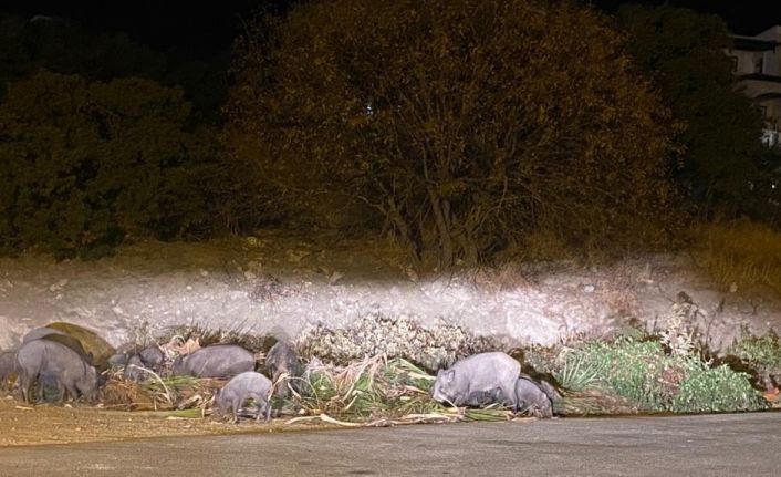 Muğla’nın Bodrum ilçesinde aç kalan domuzlar şehre indi.