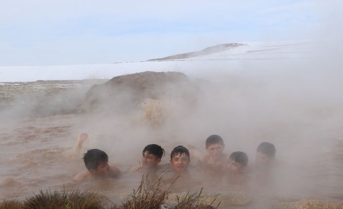 Sivas’ın Yıldızeli ilçesine bağlı Yeniyapan köyü yakınlarında yer altından doğal yollarla çıkan kükürtlü sıcak su, yaz kış ilgi görüyor. Doğal jakuzi olarak da adlandırılan 40 derecelik sıcak su, soğuk havalara rağmen çocukların keyifli anlar yaşamasına sebep oluyor. Yaz aylarında köy sakinleri ve çevre köylerin uğrak yeri olan sıcak suda, dondurucu soğukların yaşandığı bugünlerde de çocuklar eğlenceli vakit geçiriyor. Yeniyapan köyünde yaşayan çocuklar, eksi 10 derecelik soğuk havaya rağmen suya gelerek içine girdi. Sıcak suda yüzerek eğlenen çocuklar, renkli görüntüler oluşturdu.