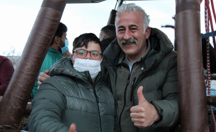 Kapadokya’da ilk kez sıcak hava balon turuna katılarak peribacalarının eşsiz güzelliklerini kuşbakışı izlemenin mutluluğunu yaşayan down sendromlu Ramazan Ünlü’de ilk kez balona bindiği için çok mutlu olduğunu söyledi.