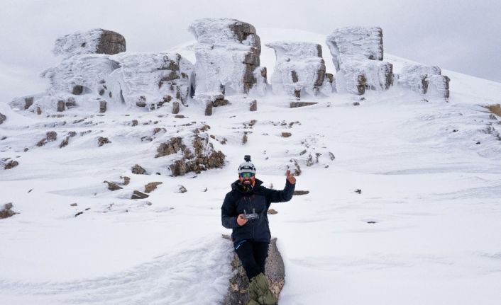 Dünyanın 8. harikası olarak kabul edilen, devasa heykellerin metrelerce yükseklikteki kardan görünmediği Nemrut Dağı havadan görüntülendi.