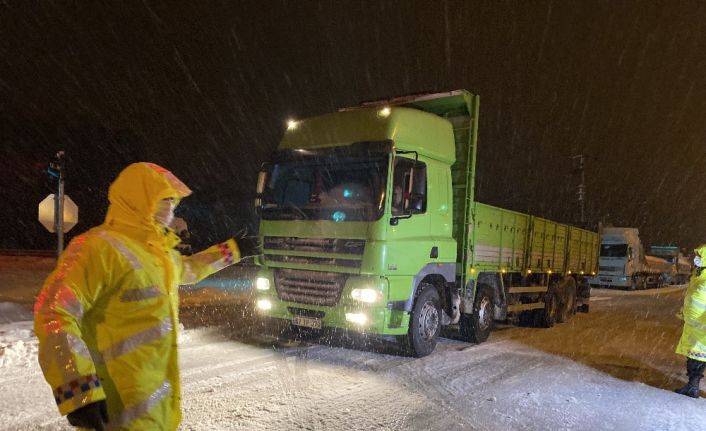 Zonguldak D-655 karayolu yoğun kar yağışı nedeniyle ağır tonajlı araçların geçişine kapatıldı.