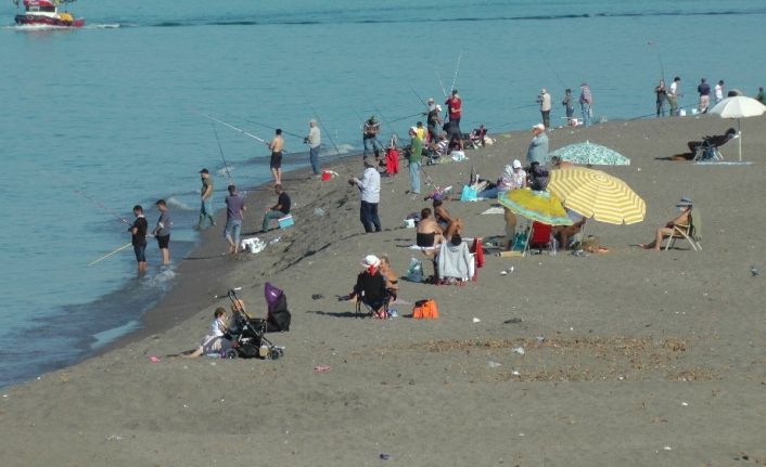 Düzce’nin Akçakoca sahillerine akın eden olta balıkçıları, bir yandan avlanırken bir yandan da güneşin tadını çıkarıyor.