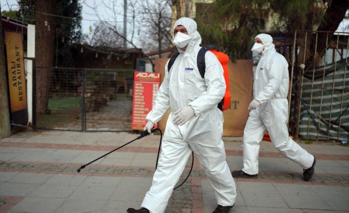 Edirne’de, göçmenlerin geçiş güzergahı olarak kullandığı Karaağaç Mahallesi’nde, korona virüs önlemi için dezenfekte çalışmaları yapılıyor.