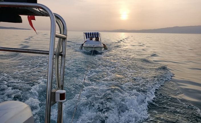 Balıkesir’in Burhaniye ilçesin açıklarında içinde biri kadın iki kişinin bulunduğu özel bir fiber teknenin makinesi arıza yaptı.